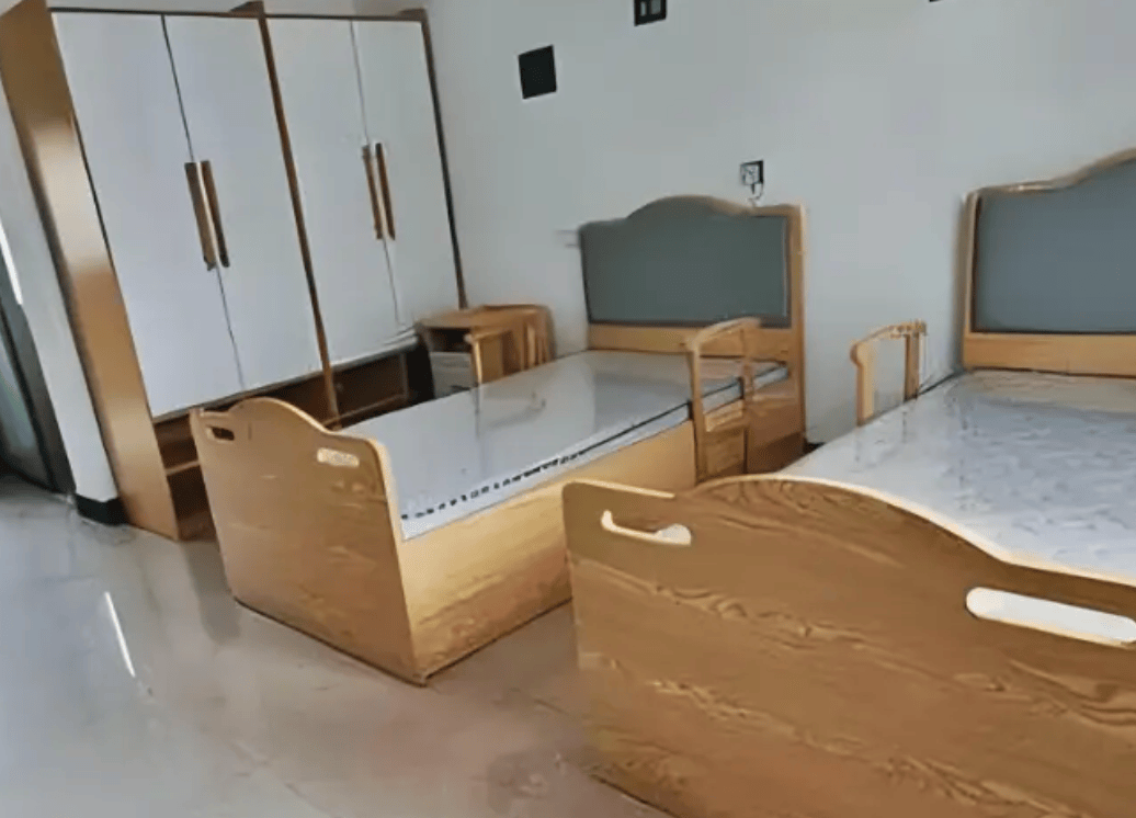养老院全屋配备了一系列安全设施,全方位保障长者的生活安全。防滑地板、弧角家具的设计,有效减少了长者因碰撞或滑倒而受伤的风险。感应夜灯在夜间自动亮起,为长者起夜提供便利。紧急呼叫系统分布在房间各个角落,长者遇到紧急情况时,只需轻轻一按,工作人员就能迅速赶到。卫浴空间的无障碍洗手池、L型扶手、防滑地胶等设施,让长者使用更加安全、舒适。